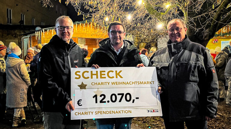 Die Übergabe der Spenden erfolgte direkt an Johann Rumetshofer von der Pfarrgemeinde Traun. Gemeinsam mit dem Stadtmarketing Traun und Norbert Gündisch von den Raubrittern begleitete er die Organisation des Charity Weihnachtsmarktes. Das Ergebnis zeigt eindrucksvoll, wie viel möglich wird, wenn lokale Unternehmen, Vereine, Organisationen und Bürger:innen zusammenhelfen.